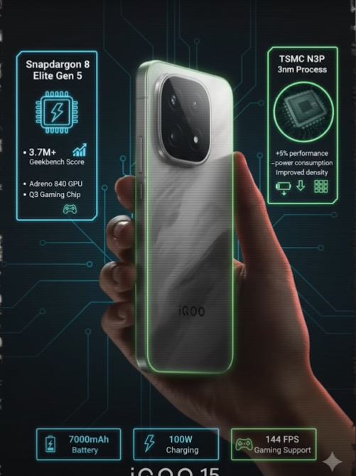 The transition from the previous N3E process (efficiency-focused) to N3P (performance-enhanced) ensures that the IQOO 15 delivers a perfect balance of speed and thermal efficiency, keeping the device cool even under heavy load.